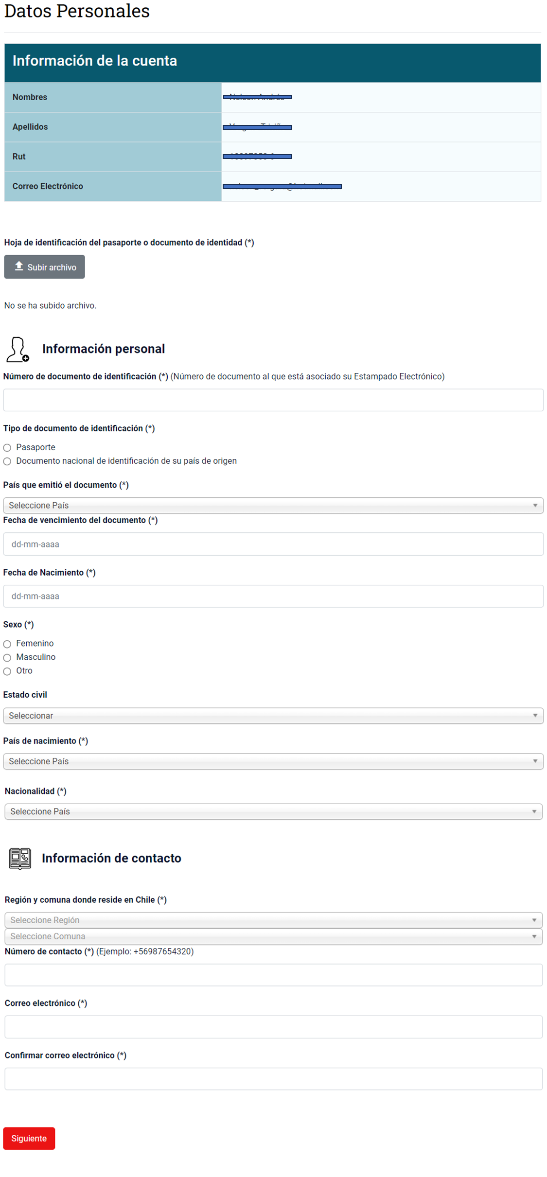 A continuación, deberás ingresar tus “Datos Personales” como Información personal e Información de contacto y adjuntar la documentación solicitada. Una vez completado el formulario haz clic en Siguiente.